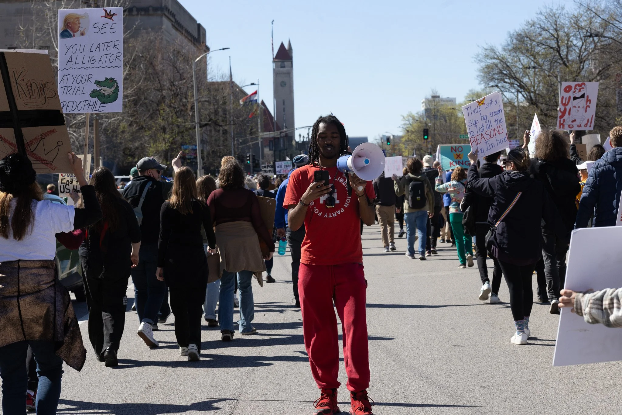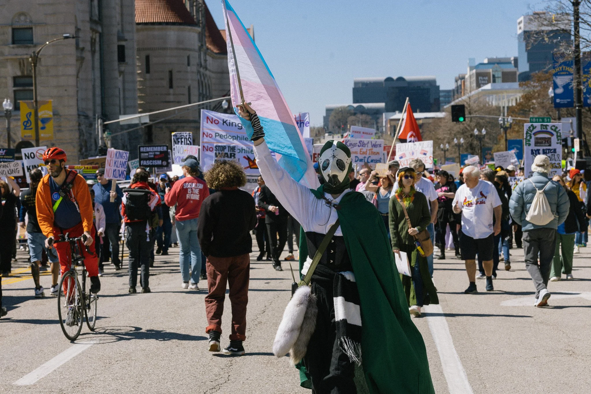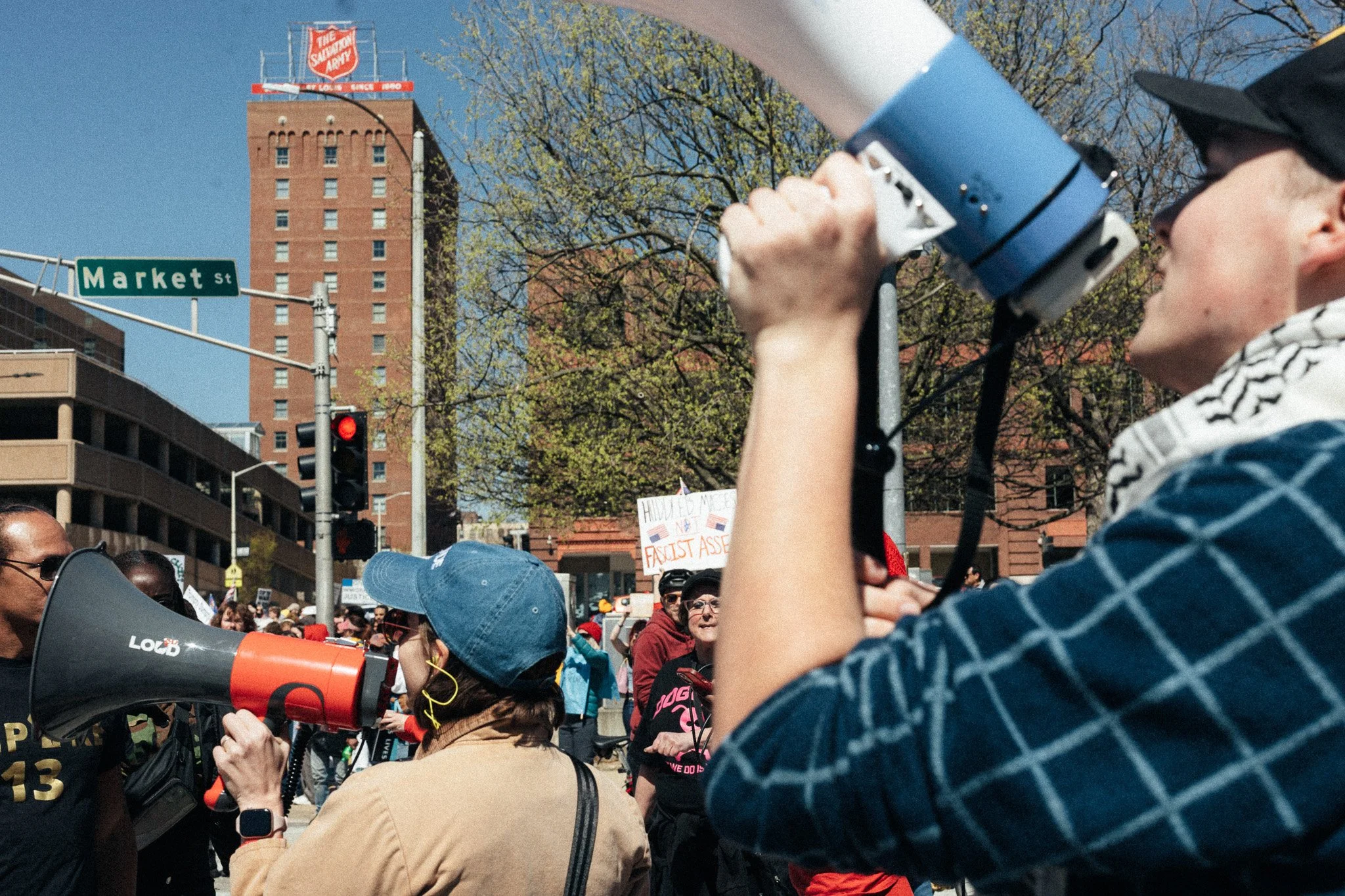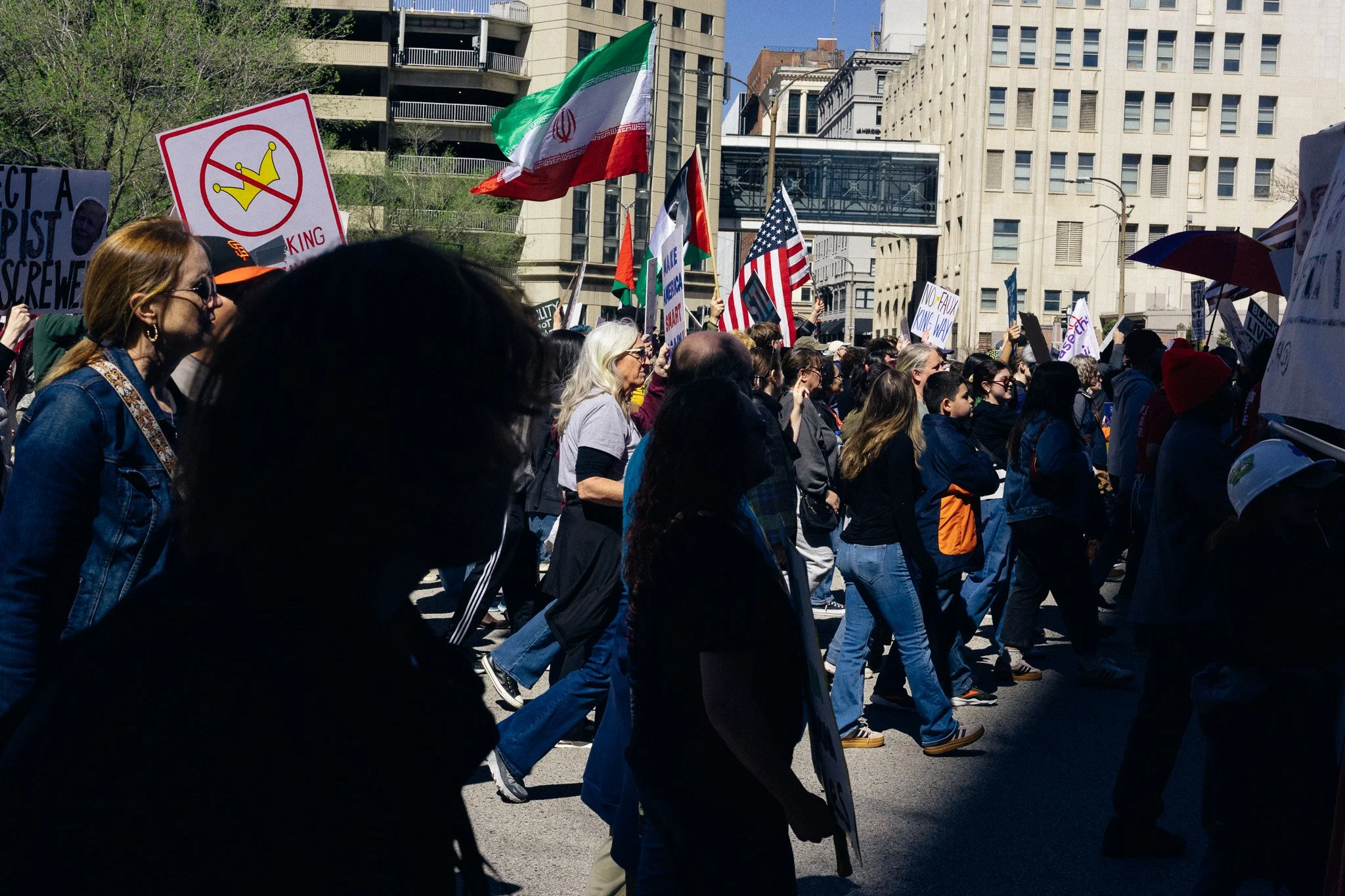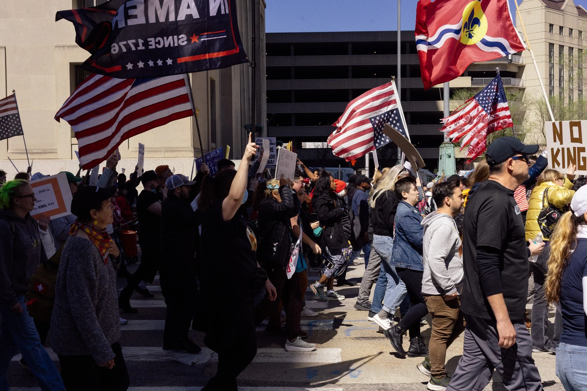 It’s been awhile! I’ve had to admit to myself that at least for the moment I’m a three-season photographer. I did get out and have some mini-adventures and photowalks and have grown a bit in my understanding of film (no film shots in this post). But in general, there are just fewer events in St. Louis in the winter, and I need events for density of people. Last weekend brought the third No Kings protest downtown and while I’m sporting a mild injury, I hobbled all over the march path with them.