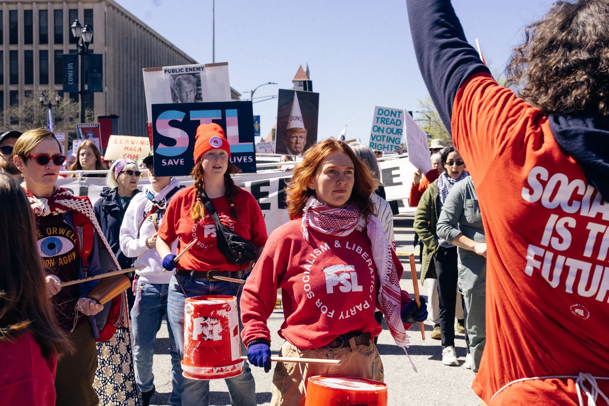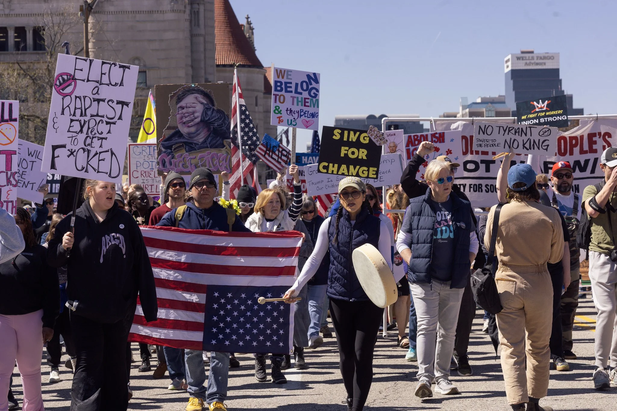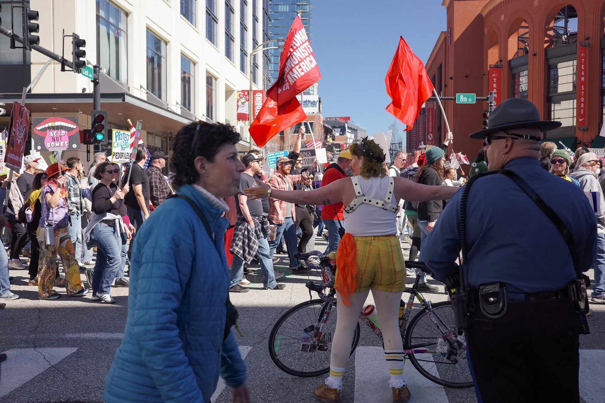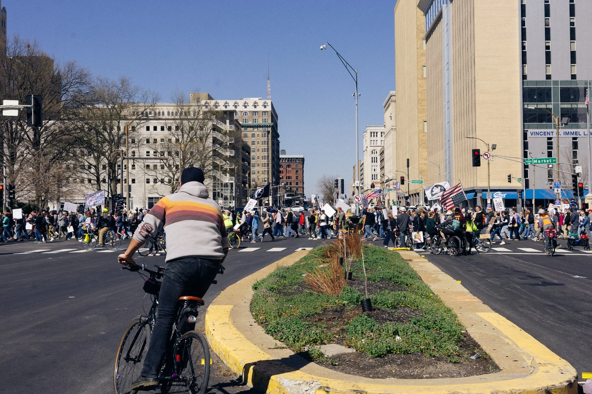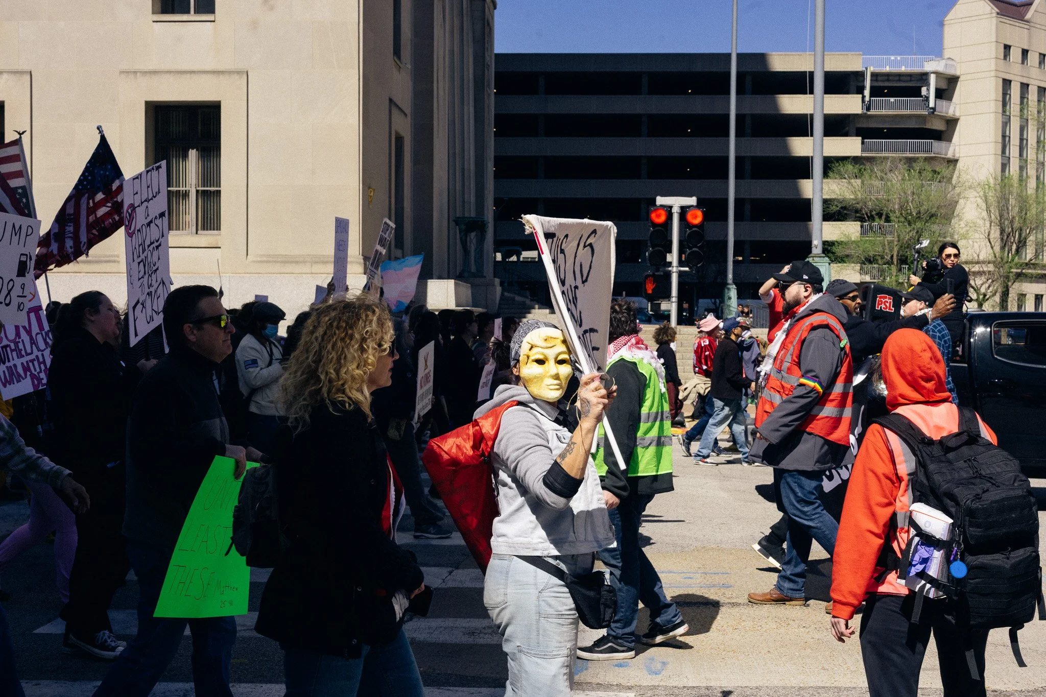 It’s been awhile! I’ve had to admit to myself that at least for the moment I’m a three-season photographer. I did get out and have some mini-adventures and photowalks and have grown a bit in my understanding of film (no film shots in this post). But in general, there are just fewer events in St. Louis in the winter, and I need events for density of people. Last weekend brought the third No Kings protest downtown and while I’m sporting a mild injury, I hobbled all over the march path with them.
