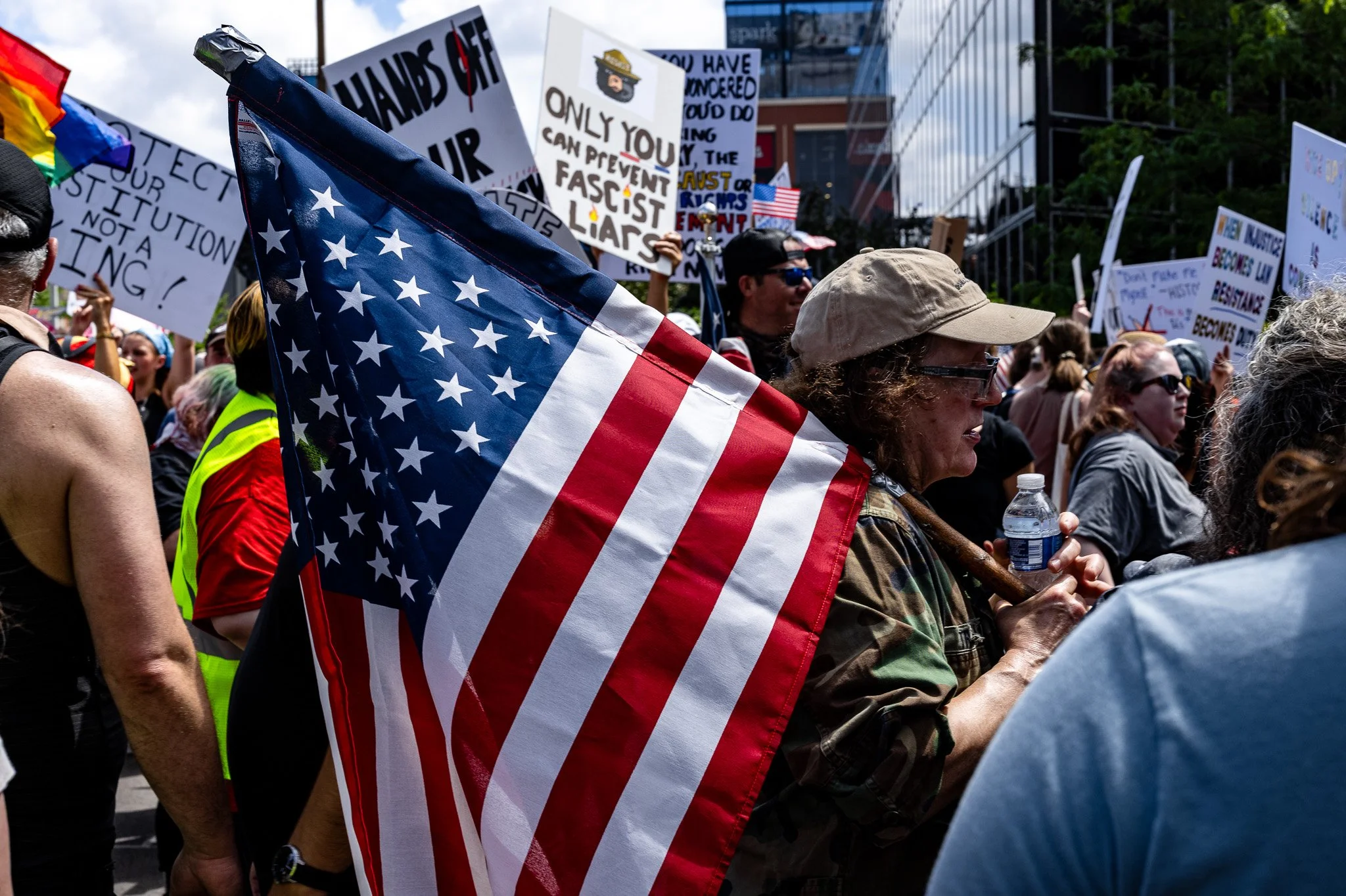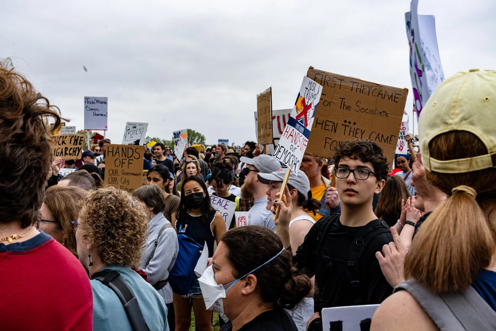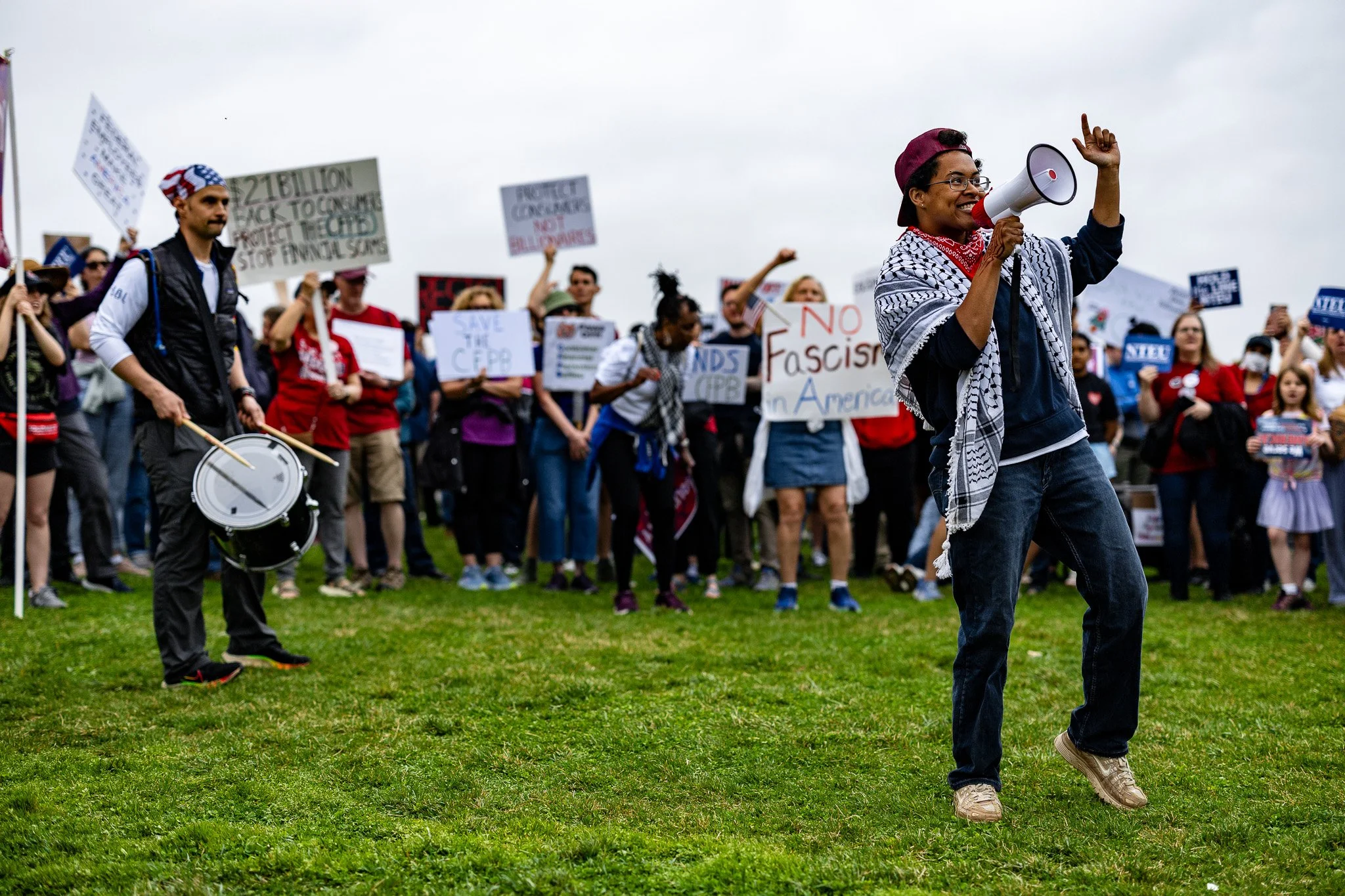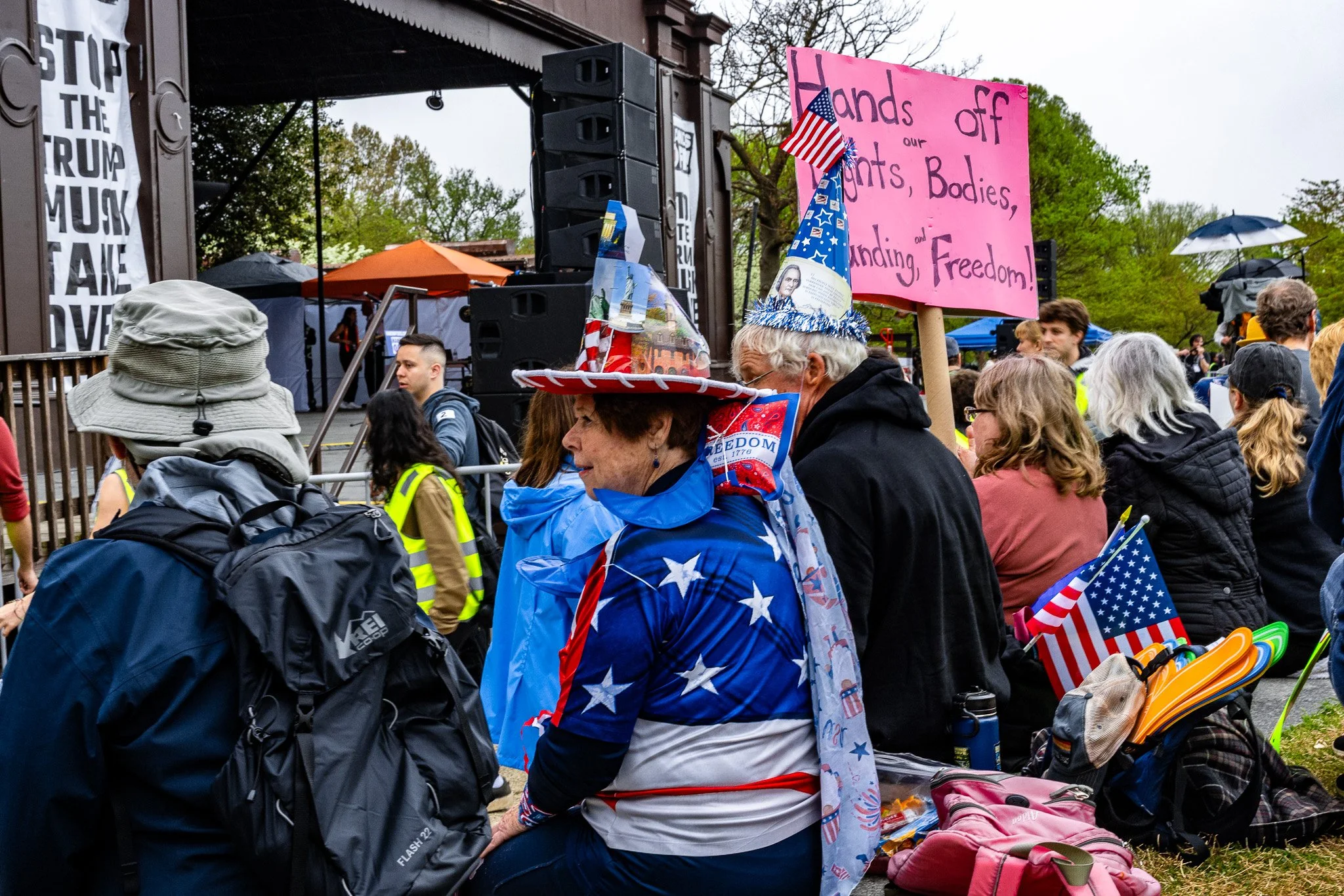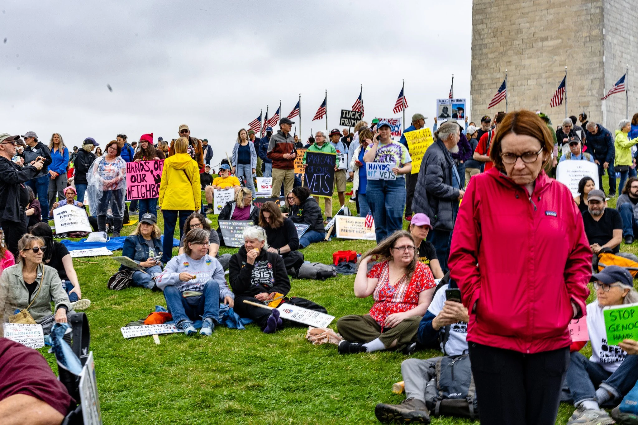 Yesterday I woke up at 4am, caught a flight to DC, and was home by 8pm. I went both to participate in and also to photograph the nationwide Hands Off protest there. After Trump’s second inauguration I saw a set of pictures from a street photographer and was disappointed in myself for not being there. When the first real protest happened after two months of relative insanity I had a hunch I might fly in, and other than having a panic attack when I couldn’t immediately find coffee it was well worth it.