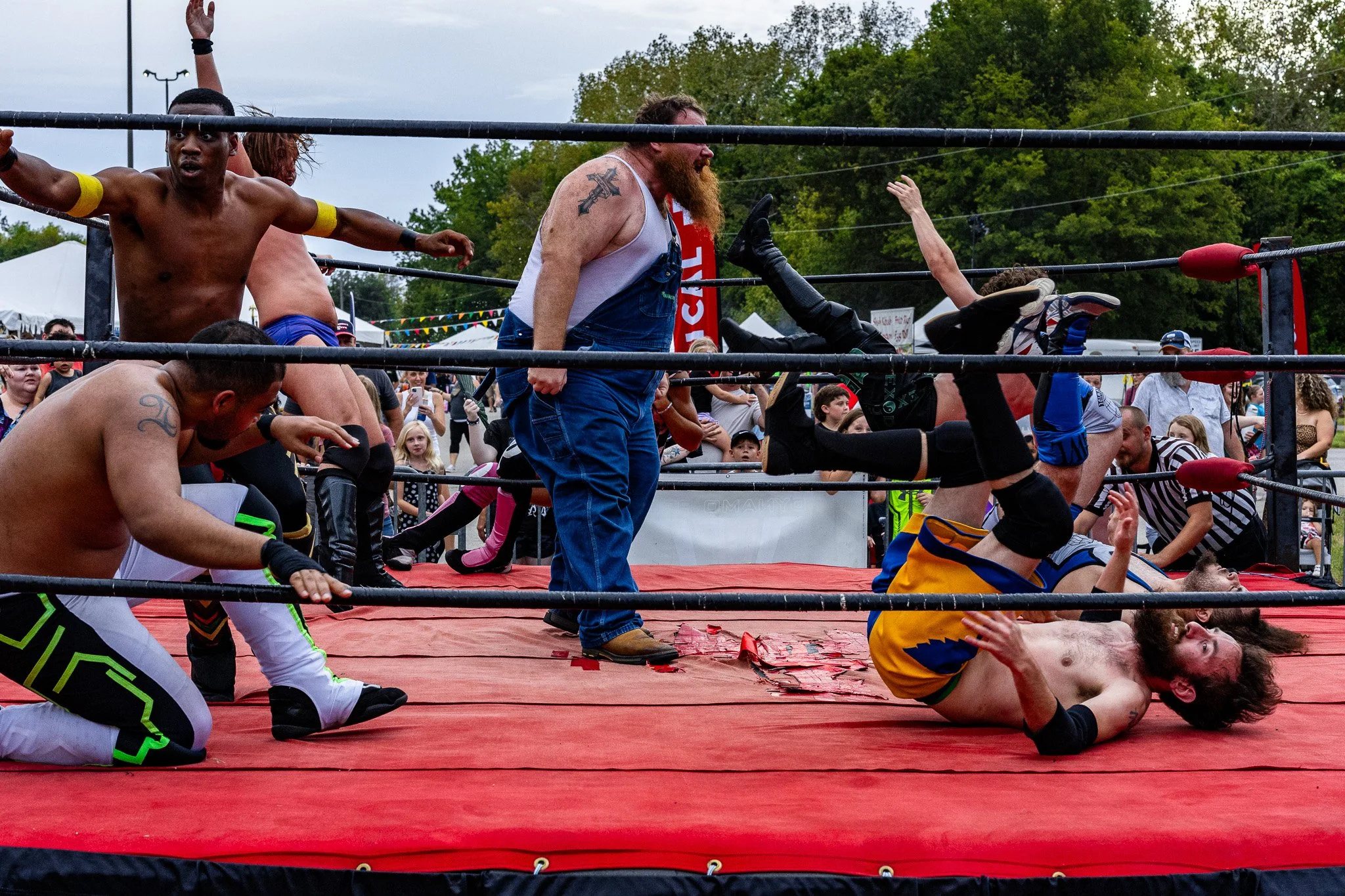 Wrestling at Arnold Days. A lot of images follow because, well, I liked them. I loved the hammy drama and facial expressions and the crowd reactions, the whole thing was just a delight to shoot.