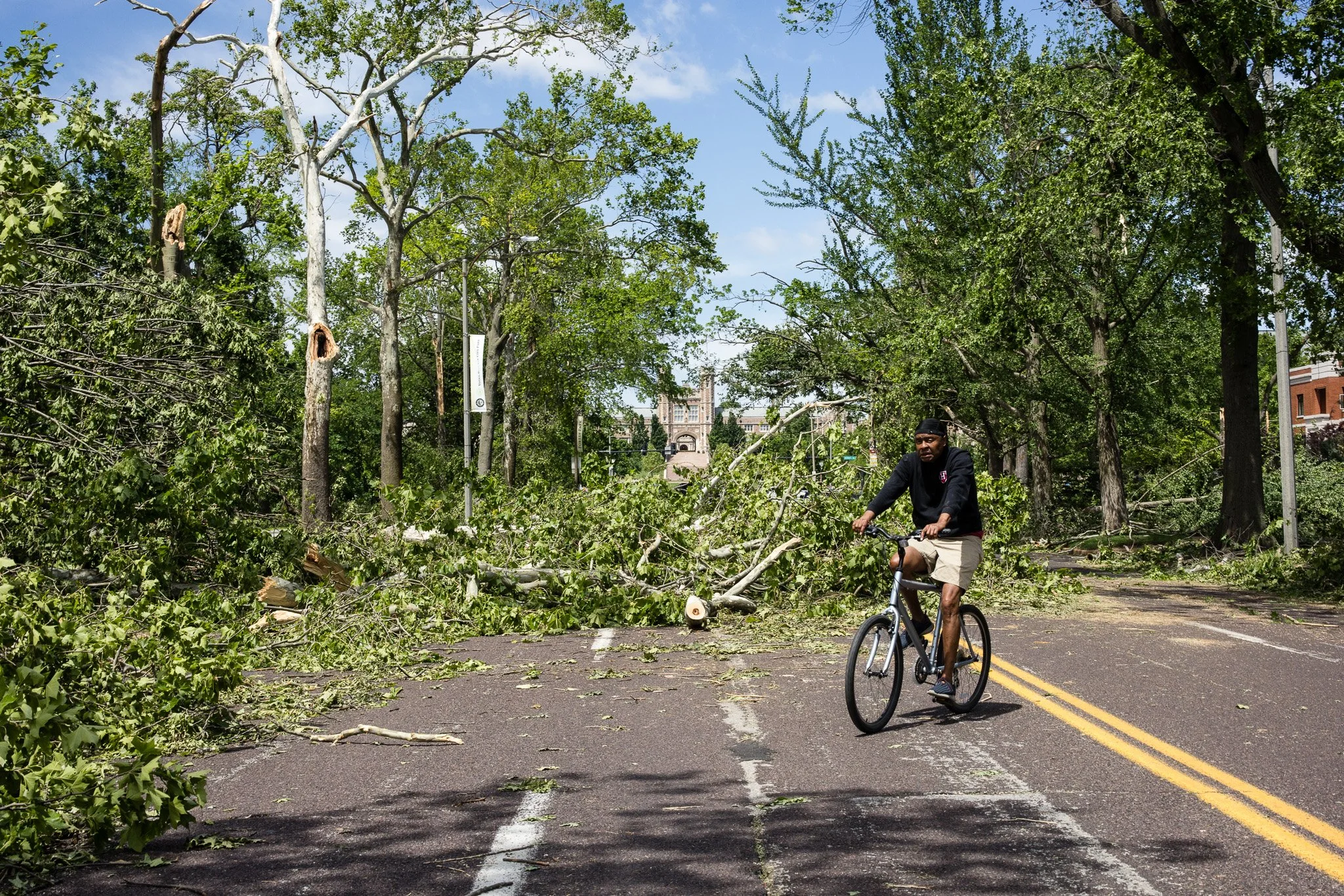 A year pressed itself into three weeks, and a generation’s worth of hurt was ratcheted into five minutes. Bricks flew at 150mph blowing holes clear through cars, trucks, and buildings. Vehicles were left mangled and flipped, hundreds if not thousands of roofs sheered clear or partially off, side walls and parapets collapsed, windows were blown out and glass was shattered all over—everywhere. A spaghetti of power lines lay down the alleys and backyards, trees exploded and splayed across many streets or crushing cars or homes, most cell towers and street lights down.
